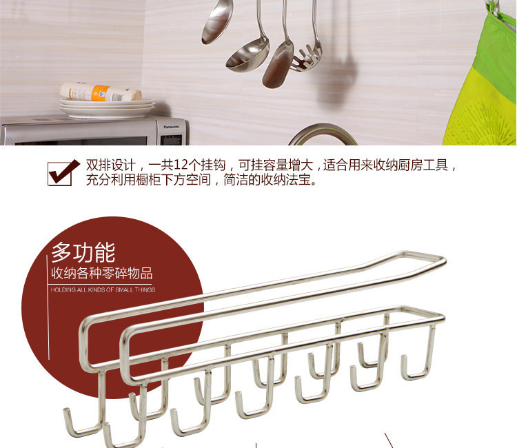 下挂钩不锈钢吊柜顶棚插卡式挂钩衣柜夹层免钉无痕挂钩置物架杯架